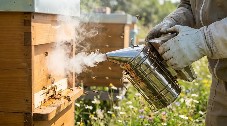 在入口和盖子下方轻轻吹几下通常就足够了。目的不是让蜂箱充满烟雾,而是温和地告知蜜蜂你的存在,并掩盖任何最初的警报信息素。